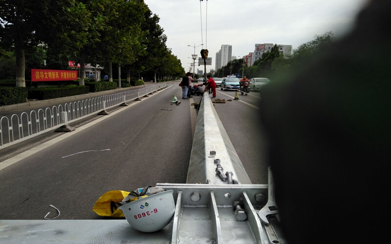 任丘市華北油田大型監(jiān)控桿安裝現(xiàn)場(chǎng)